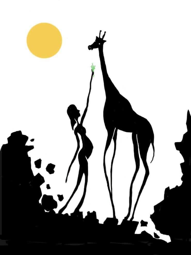 Sverige april 2019, træstamme, blæk og Ipad.